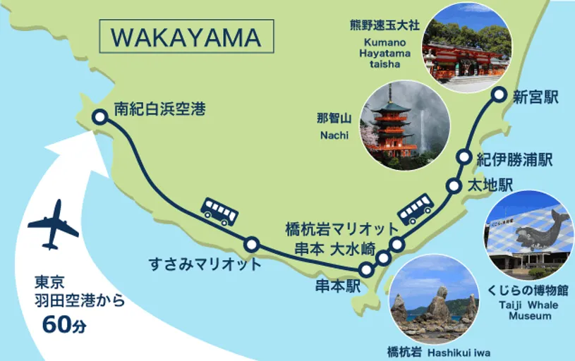 南紀白浜空港 リムジンバス乗り場 9:30発予約:済み支払い:済みチケット:予約受付確認メールを乗務員に提示 スタンプスポットの詳細情報 ※こちらには、スタンプラリーの注意事項などを記載ください。※不明点などございましたら、WeARee!のお問合わせページよりご連絡ください。 スタンプラリーを楽しむ為のポイント!◆ スマートフォンの充電を忘れずに!スタンプラリーは長時間歩き回ることが多く、スマート